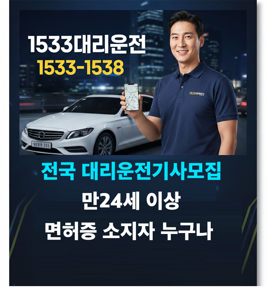 1533-1533 대리운전 구인 공고 입니다. [제목] 전국 대리운전 기사모집, 수입 좋은 사무실의 기준! ‘1533-1533 대리운전’에서 고수익 투잡 시작 해보세요! 안녕하세요.